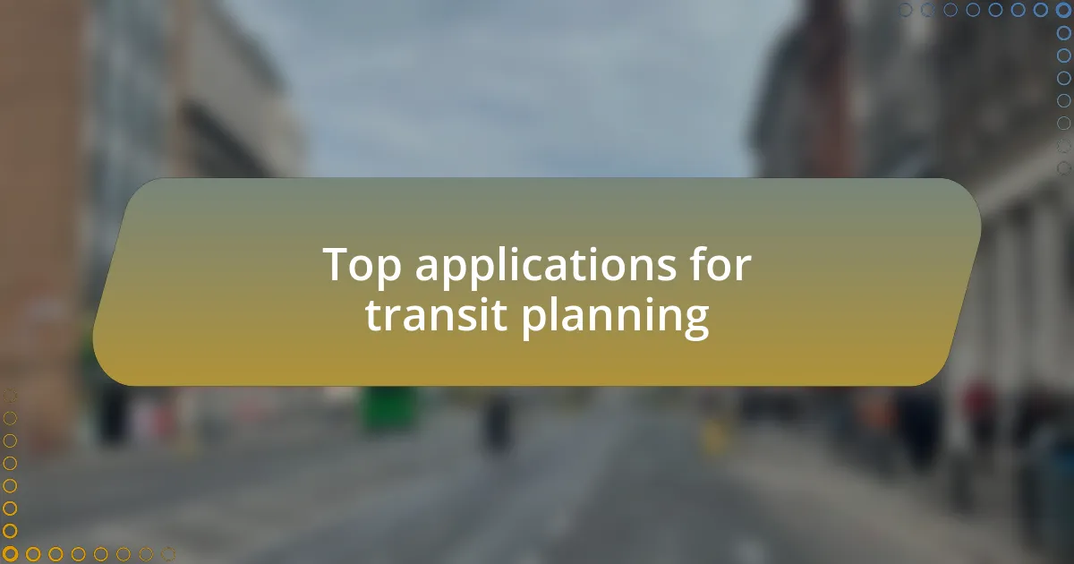 When discussing top applications for transit planning, my go-to choice is Google Maps. Its versatility allows me to plan multi-modal trips with ease, combining walking, biking, and public transport in one seamless route. I recall a day when I needed to get across town quickly; Google Maps not only found the fastest bus route but also suggested a bike share station nearby. Have you ever experienced that rush of adrenaline when you know you’re on the clock and the app gives you viable options right away?
