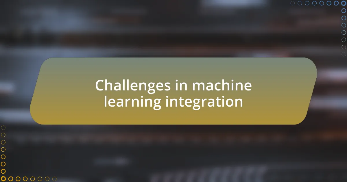 Integrating machine learning into Intelligent Transportation Systems comes with significant challenges that can’t be overlooked. One of the hurdles I’ve encountered involves data quality and accessibility. When I worked on a smaller project involving traffic data, I realized that inconsistent or incomplete data severely impacted the model’s effectiveness. It got me thinking—how much could we improve our predictions if the foundational data was consistently accurate?