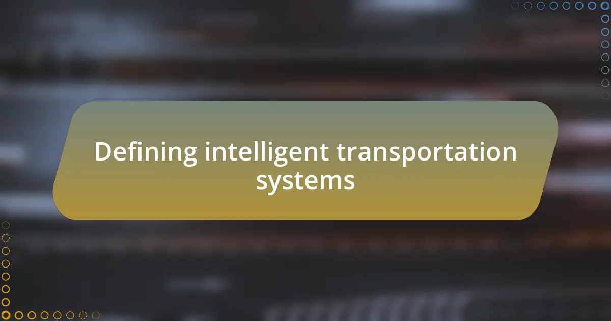 Intelligent Transportation Systems (ITS) refer to advanced applications that aim to improve the efficiency and safety of transportation systems. From my experience, these systems integrate technologies like sensors and communication networks to gather real-time data, enabling better decision-making. Have you ever noticed how traffic lights adapt to congestion? That’s a simple example of ITS at work.