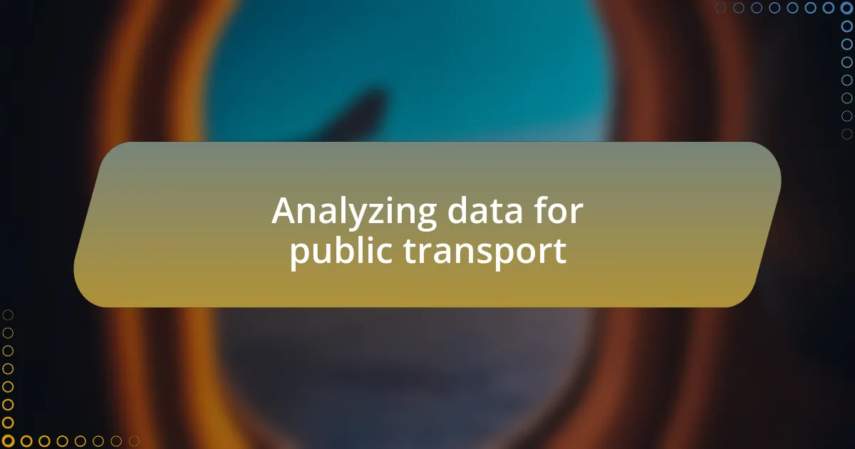 I’ve learned that geographic information systems (GIS) play a crucial role in this analysis. For example, in my city, GIS data helped identify underserved areas where people struggle to access public transport. It struck me how such insights can lead to more equitable solutions, allowing everyone to benefit from efficient public transit. Can you imagine what it would mean for communities if every transit route was optimized based on comprehensive data?
