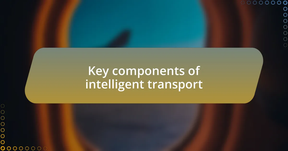 One of the key components of intelligent transport is real-time data analytics. This technology enables transit systems to monitor traffic patterns, understand passenger behaviors, and predict bus or train arrivals. I remember a time, waiting for a train, when the platform’s digital display updated in real-time, informing us of delays and alternative routes. It felt reassuring to stay informed, transforming what could have been a frustrating wait into a more manageable experience.