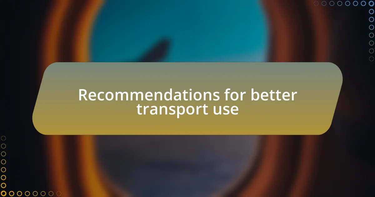 Another recommendation is to promote flexible fare systems that adapt based on time and demand. During peak hours, I sometimes found it challenging to squeeze onto crowded buses, but when I learned that some cities offer discounted fares during off-peak times, it sparked my interest. Implementing such a system could alleviate congestion and improve the overall travel experience. Why not incentivize those who can shift their schedules to travel when it’s less busy?