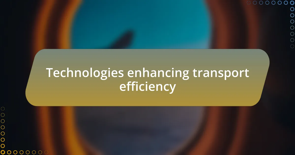 One emerging technology that truly enhances transport efficiency is the use of artificial intelligence in predictive analytics. I remember a time when I was anxiously waiting for my bus during a downpour, only to receive a notification that it was delayed. Later, I learned how AI algorithms analyzed weather and traffic data to improve scheduling. Isn’t it remarkable how these smart systems can adapt in real time to keep us moving, even when the skies aren’t cooperating?