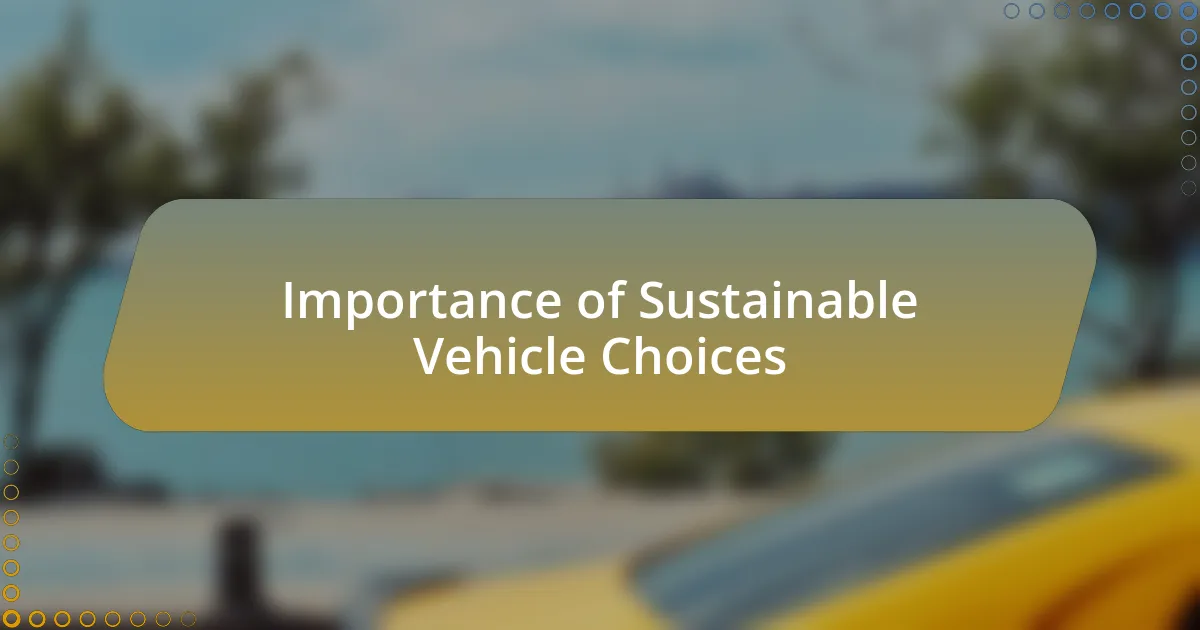 Embracing sustainable vehicle choices is more than just a trend; it’s a commitment to our planet’s future. I vividly remember the first time I switched to an electric vehicle. Not only did I find joy in its quiet operation, but I also felt a sense of responsibility for reducing my carbon footprint. That moment drove home the importance of making choices that support environmental health.