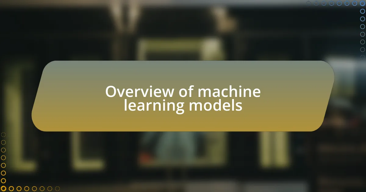 Overview of machine learning models