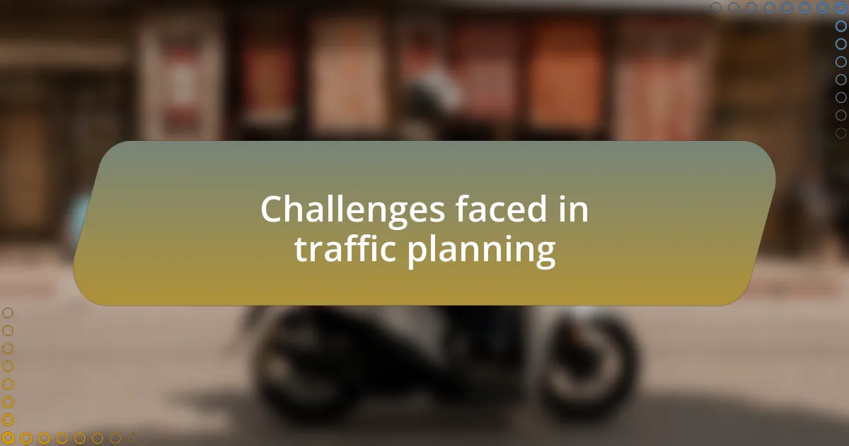 Handling the intricacies of traffic planning has presented its fair share of challenges. I remember one instance where conflicting interests among stakeholders made it difficult to agree on a new bus lane design. It was frustrating to balance the need for improved public transport against community concerns about loss of parking. Can you imagine the weight of those discussions? Navigating political and public pressures can sometimes feel like walking a tightrope.