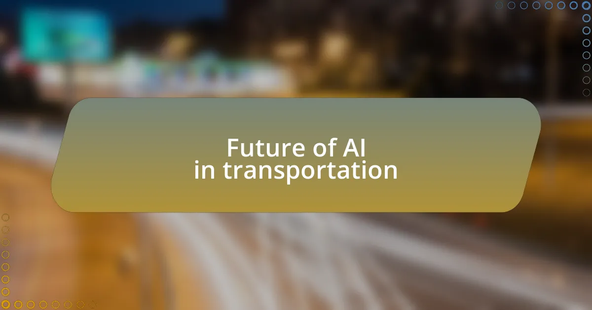 As I think about the future of AI in transportation, I often recall a recent experiment where a smart traffic management system reduced wait times at intersections significantly. Witnessing cars flow seamlessly through a busy area felt efficient and almost serene, but I wondered: Are we at risk of becoming too dependent on technology to guide our daily lives?