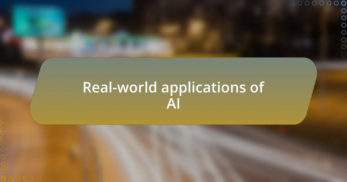 One compelling real-world application of AI lies in the realm of traffic management systems. I once had the opportunity to observe a smart traffic light system in action during a visit to a major city. The way it adjusted in real-time based on the flow of vehicles and pedestrians was mesmerizing. It made me wonder, what if all cities adopted this technology? The potential to reduce congestion and improve safety feels almost revolutionary.