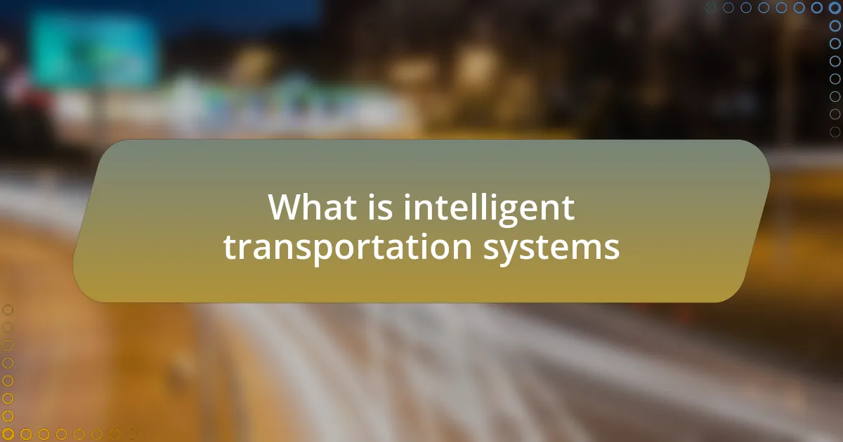 Intelligent Transportation Systems (ITS) refer to advanced applications that aim to improve the efficiency and safety of transportation. They utilize modern technologies to gather and analyze data, ultimately enhancing the overall travel experience. Can you imagine a world where traffic jams become a relic of the past, all thanks to smart traffic lights and real-time data sharing?