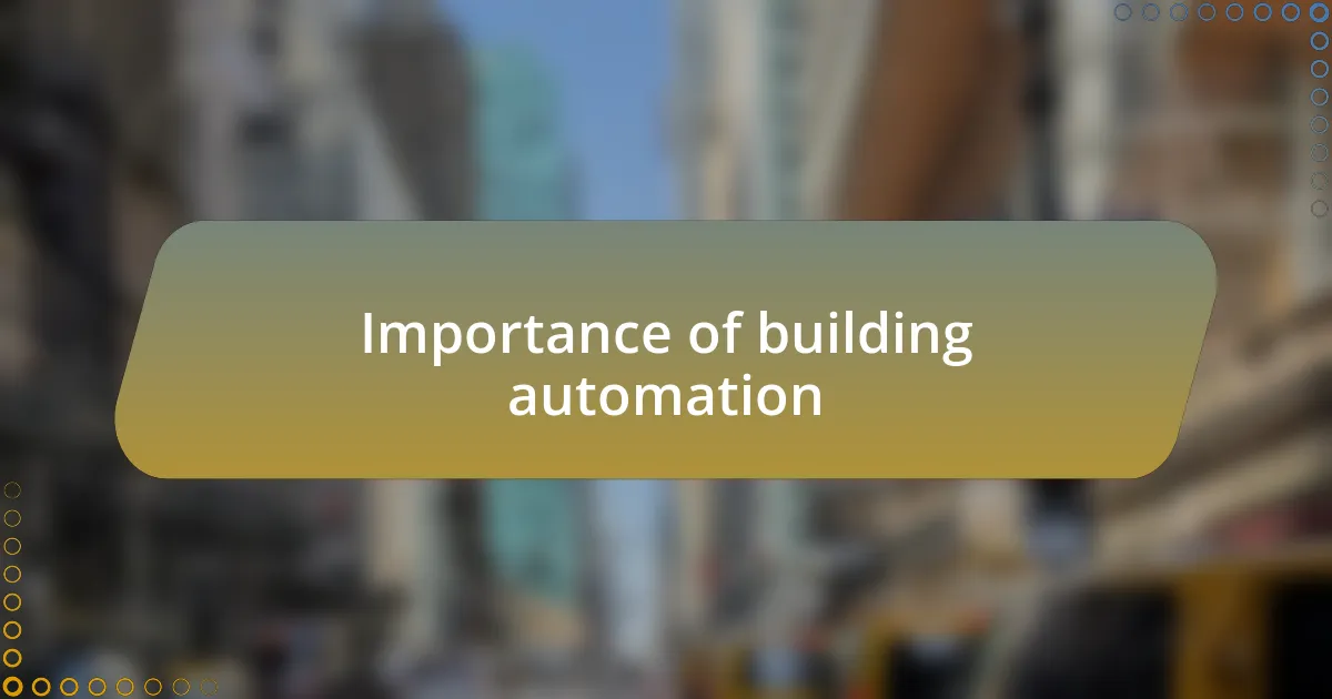 Building automation is crucial for enhancing the efficiency and functionality of modern infrastructures. Just last month, I visited a building equipped with an automated climate control system that adjusted based on occupancy and weather changes. It made me realize how much energy and costs could be saved with such intelligent systems, creating not only comfort but also sustainability.