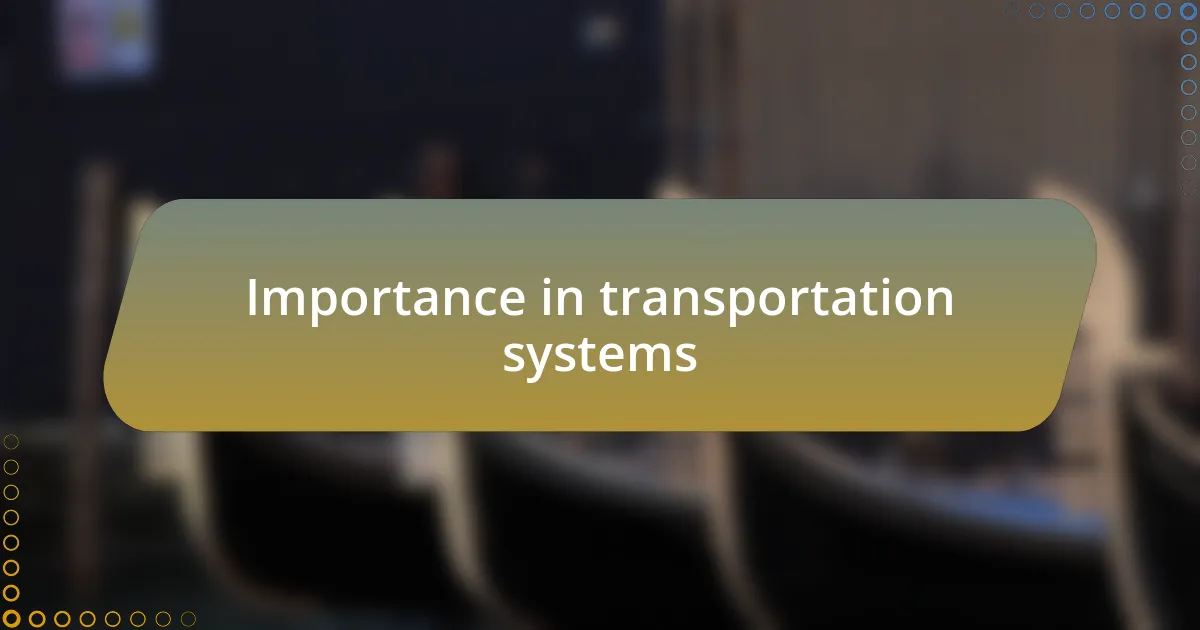 The importance of timely information in transportation can’t be overstated. I recall attending a conference where experts showcased how integrating real-time data analytics allowed for immediate adjustments to traffic signals based on live traffic conditions. Imagine the relief of drivers when lights turn green just as they approach, reducing frustration and promoting a fluid traffic flow.