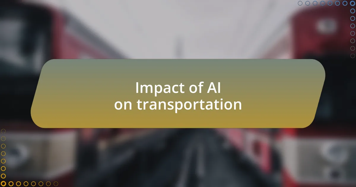 The impact of AI on transportation is monumental, reshaping the way we navigate urban environments. I recall one instance while stuck in traffic, feeling the frustration of wasted time and energy. Fast-forward to today, where AI-driven traffic management systems can analyze real-time data to optimize flow, drastically reducing congestion. It’s fascinating to think about how much time could be saved if more cities adopted these intelligent solutions.