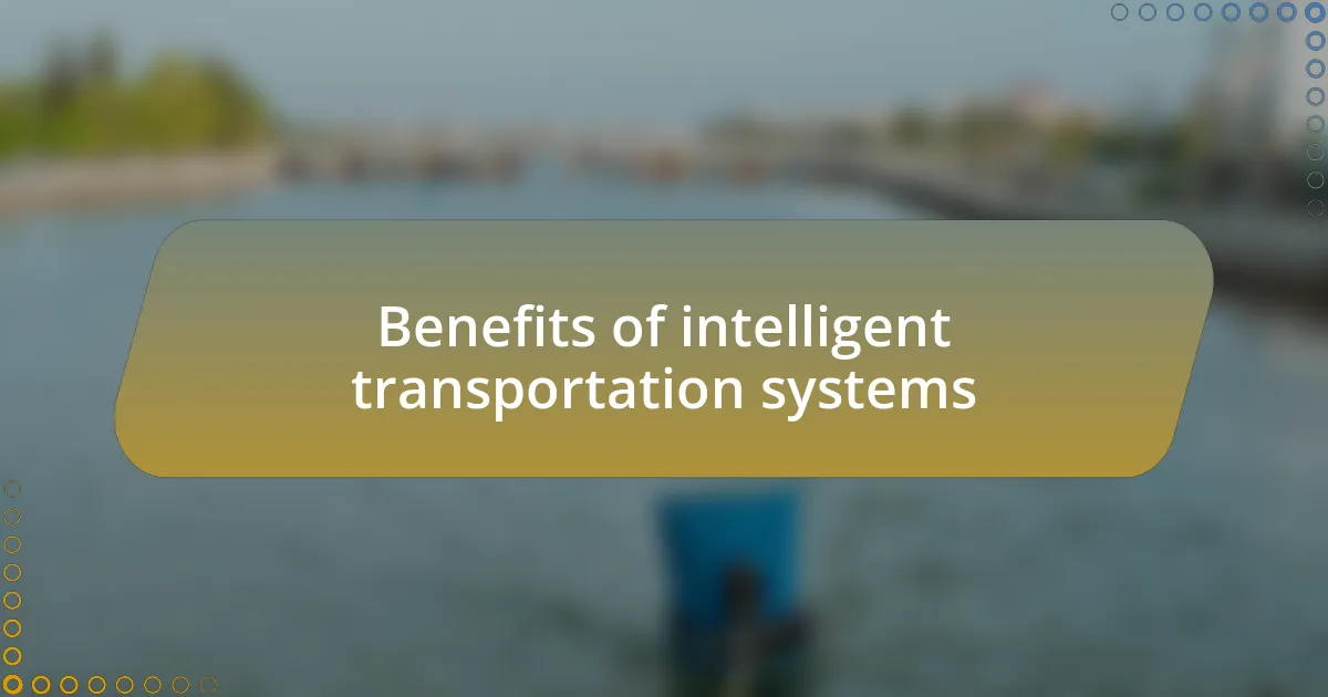 Another compelling benefit is the data-driven approach of ITS, which can streamline public transport systems. I once attended a seminar where planners discussed how they used real-time data to optimize bus routes based on user demand. This means fewer waits and more reliable service for riders. Do you appreciate the comfort of knowing a bus will arrive on time? Intelligent transportation systems make that a reality, transforming how we experience mobility in our daily lives.