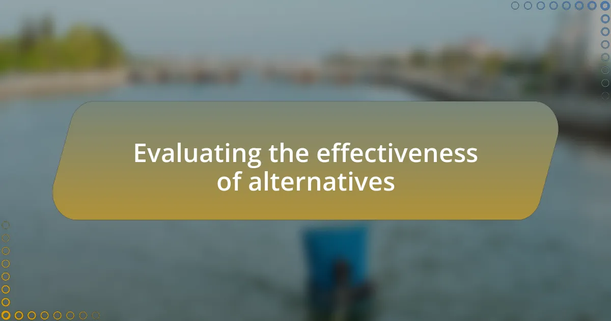 Evaluating the effectiveness of alternatives requires us to consider various factors such as convenience, cost, and environmental impact. For instance, during a recent group outing, we decided to use a combination of public transport and ride-sharing instead of driving. The experience was telling: not only did we save on parking fees, but it also sparked some engaging conversations and added to the overall enjoyment of the day. Isn’t it fascinating how the choice of transport can influence both our budget and our social interactions?
