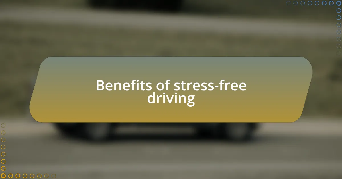 Moreover, stress-free driving often translates to better decision-making. I’ve found that when I’m not wound up, I can think critically about turns, lane changes, and unexpected obstacles. This not only keeps me safer but also maintains a smoother flow of traffic. Have you ever noticed how emotional states can dramatically alter our driving behaviors? It’s worth reflecting on how a little calm can create ripples of positivity on the road.