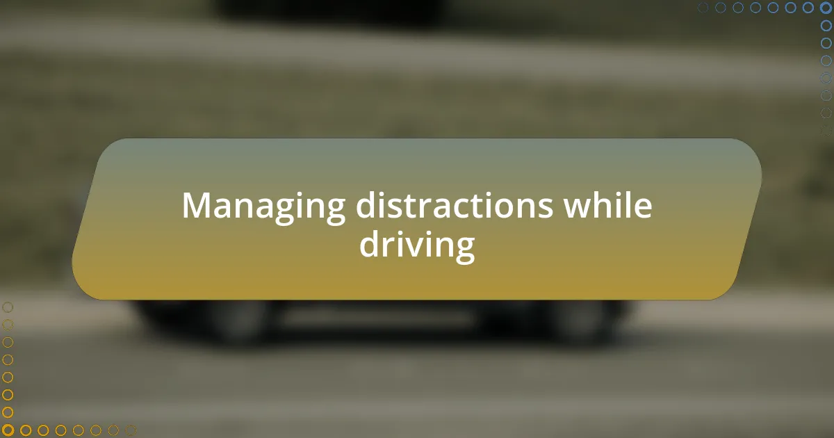 Managing distractions while driving is crucial for a safer, more enjoyable experience. I’ve found that putting my phone on ‘Do Not Disturb’ mode eliminates the temptation to check notifications, which is a game changer. Have you ever reached a destination only to realize you were mindlessly scrolling instead of enjoying the drive? It’s surprising how much clearer the road seems when I’m focused.