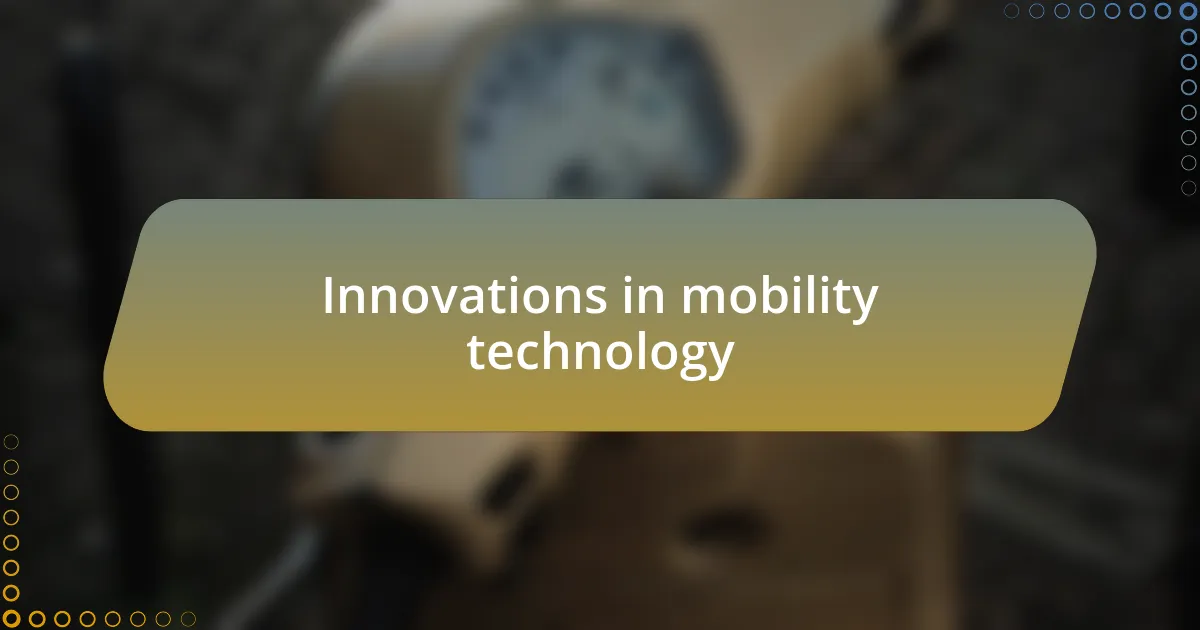 Innovations in mobility technology