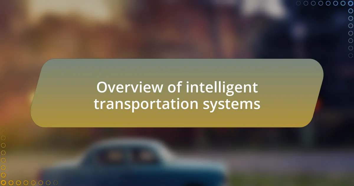 Intelligent Transportation Systems (ITS) serve as an intricate network aimed at enhancing transportation safety, efficiency, and sustainability. I recall the first time I encountered an intelligent traffic management system; it felt like stepping into the future. The way traffic lights adjusted in real time based on vehicle flow showcased not just smart technology but a vision for smarter cities that prioritize connectivity.