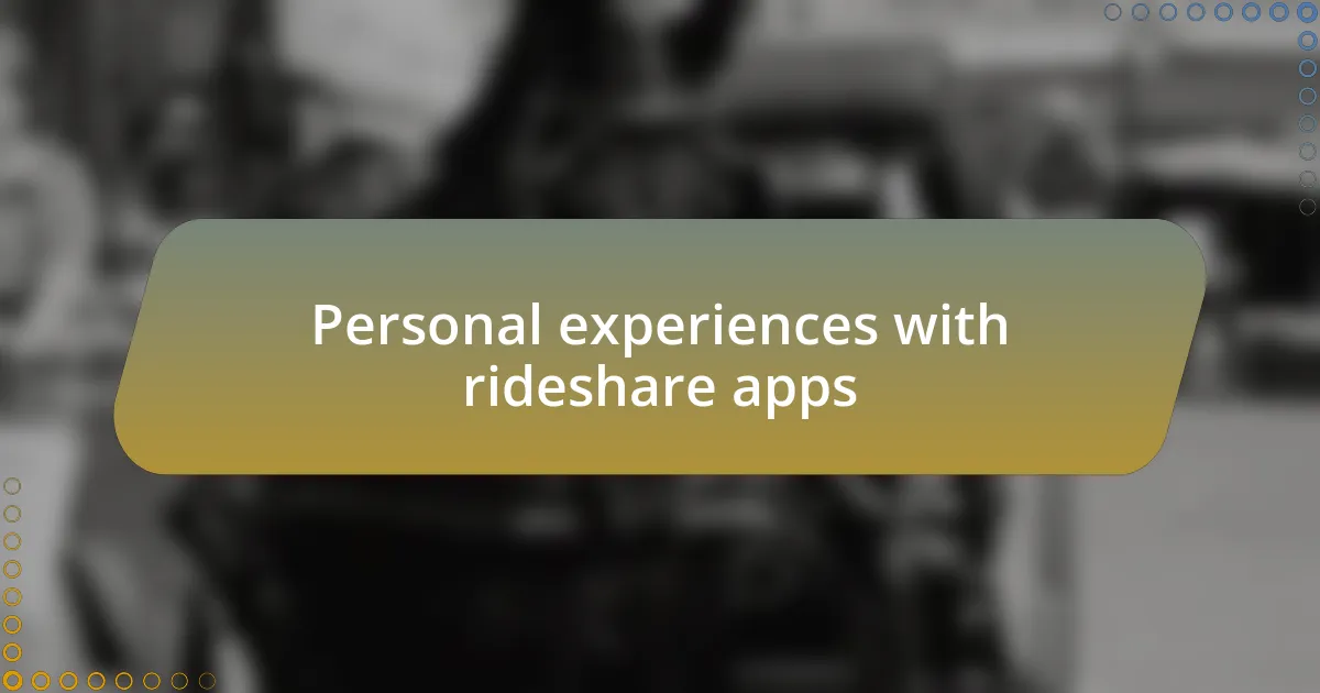 Using rideshare apps has offered me a mix of convenience and frustration, shaping my perspective on urban transportation. I vividly remember one evening when I decided to take a rideshare after a late dinner with friends. The ease of summoning a vehicle was delightful, but the experience turned sour when the driver couldn’t find my location. I found myself anxiously watching the little icon moving on the map while constantly texting to guide them. It’s moments like these that make you appreciate clear communication and reliable technology.