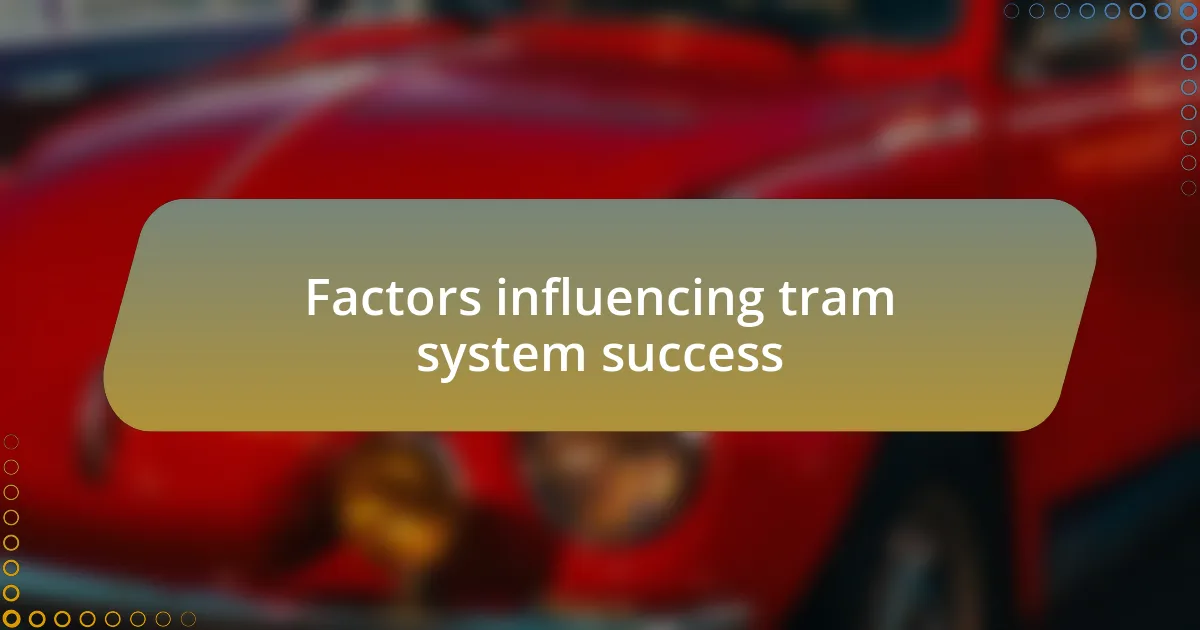 When analyzing the factors that contribute to tram system success, one can’t overlook the importance of community support. I remember attending a local meeting where residents passionately expressed their excitement over proposed tram routes. Their enthusiasm was palpable, demonstrating that when communities feel invested in the planning process, they are more likely to embrace and utilize the service. How often do we see public transit initiatives fall flat when there’s a lack of local buy-in?