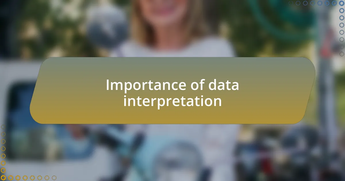 Data interpretation stands at the heart of Intelligent Transportation Systems, as it transforms raw numbers into actionable insights. I vividly recall a team meeting where we analyzed data from traffic cameras. We discovered patterns that revealed when and where accidents occurred most frequently, driving home the point that understanding this data could save lives.