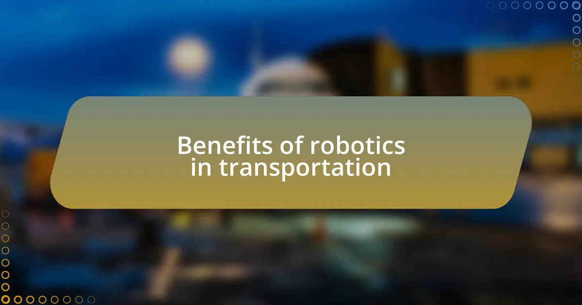 The integration of robotics in transportation brings remarkable advantages, primarily in enhancing safety. I often think about the times I’ve experienced near-misses on the road—those moments can be heart-stopping. With robotics, systems can detect obstacles and react much faster than a human could, significantly lowering the chances of accidents. This technology not only makes me feel safer behind the wheel but also empowers cities to invest more in autonomous solutions.