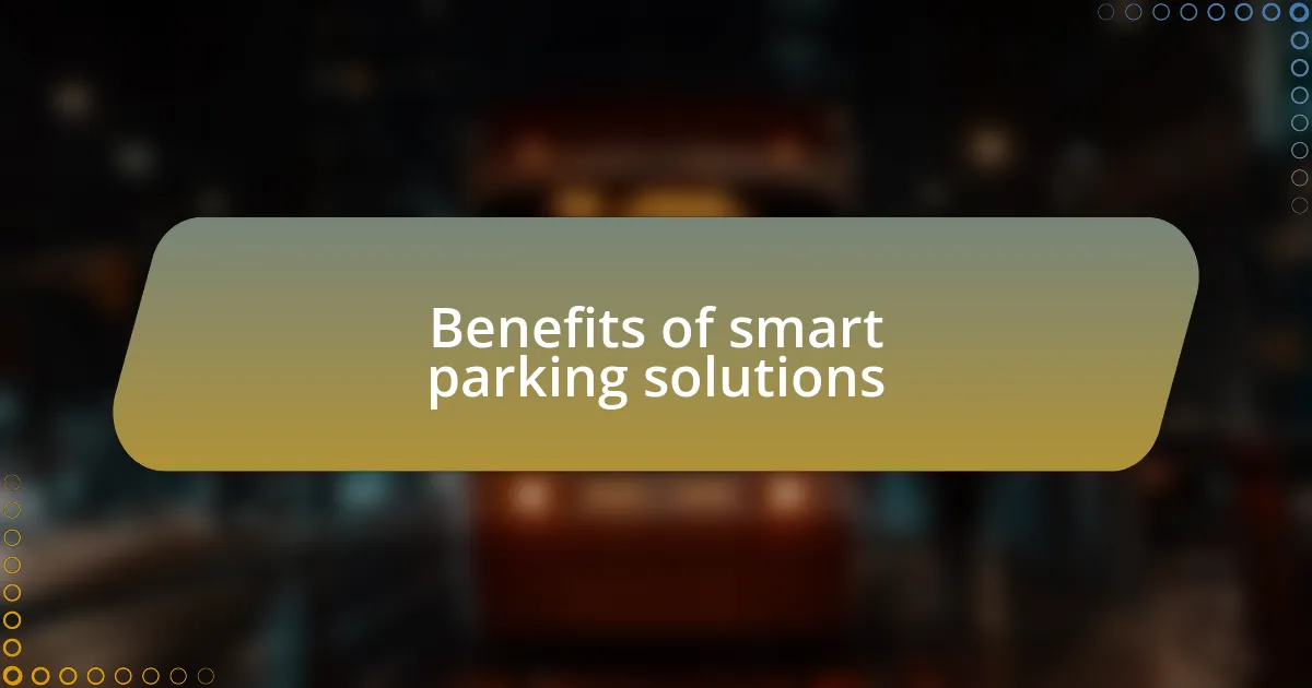Smart parking solutions deliver significant time savings, which is something I truly appreciate. I remember a day when I was running late for an important meeting. Thanks to a smart parking app, I located a spot instantly, cutting down my search time dramatically. It’s incredible how just a few minutes saved can reduce anxiety and set a more positive tone for the day.