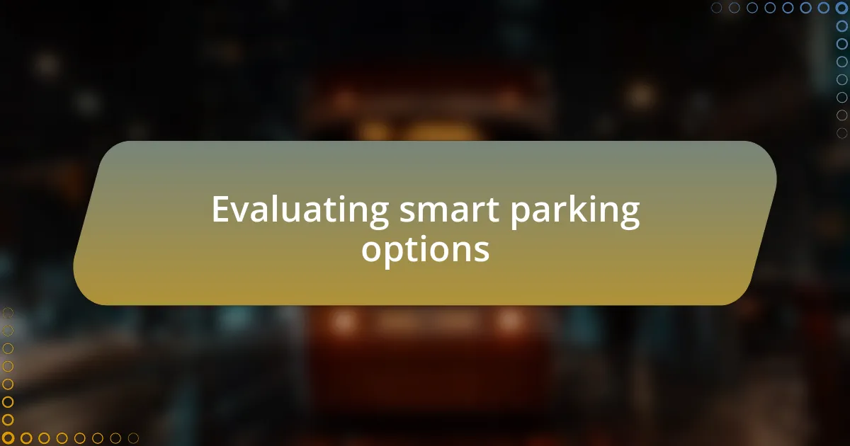 Evaluating smart parking options requires a balanced approach between technology and user experience. I recall a time when I opted for a system that claimed to offer the best features but fell short in execution. The user interface was clunky, making it frustrating to navigate when I was already juggling my busy schedule. Have you ever felt that the promise of convenience can sometimes be overshadowed by poor design?