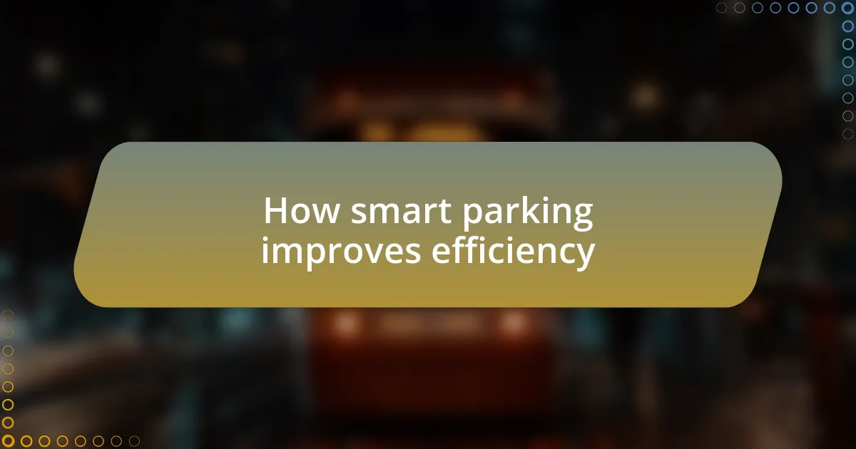 Smart parking solutions play a pivotal role in improving overall efficiency by streamlining the parking process. I remember attending a city event where the smart parking system directed me to an available spot in seconds. Instead of wasting precious time guessing where to park, I was able to focus on enjoying the event. How often do we find ourselves frustrated with a tedious search for parking? This technology transforms the experience by significantly reducing that effort.