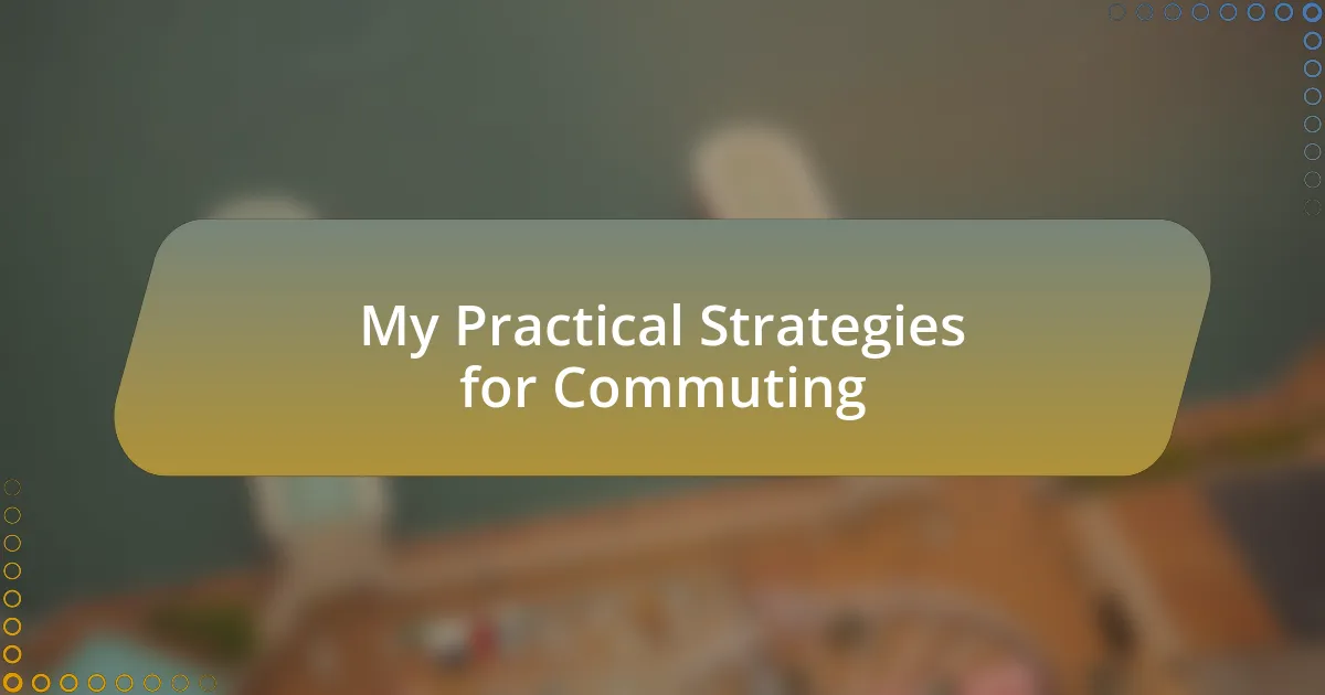 One of my go-to strategies for sustainable commuting is using public transport consistently. Every time I step onto the train instead of driving, there’s a sense of community that I appreciate. Have you ever noticed how much more relaxed you feel when you’re not stuck in traffic, but instead surrounded by fellow commuters immersed in their own worlds? It reminds me that we’re all part of a larger conversation about sustainability.